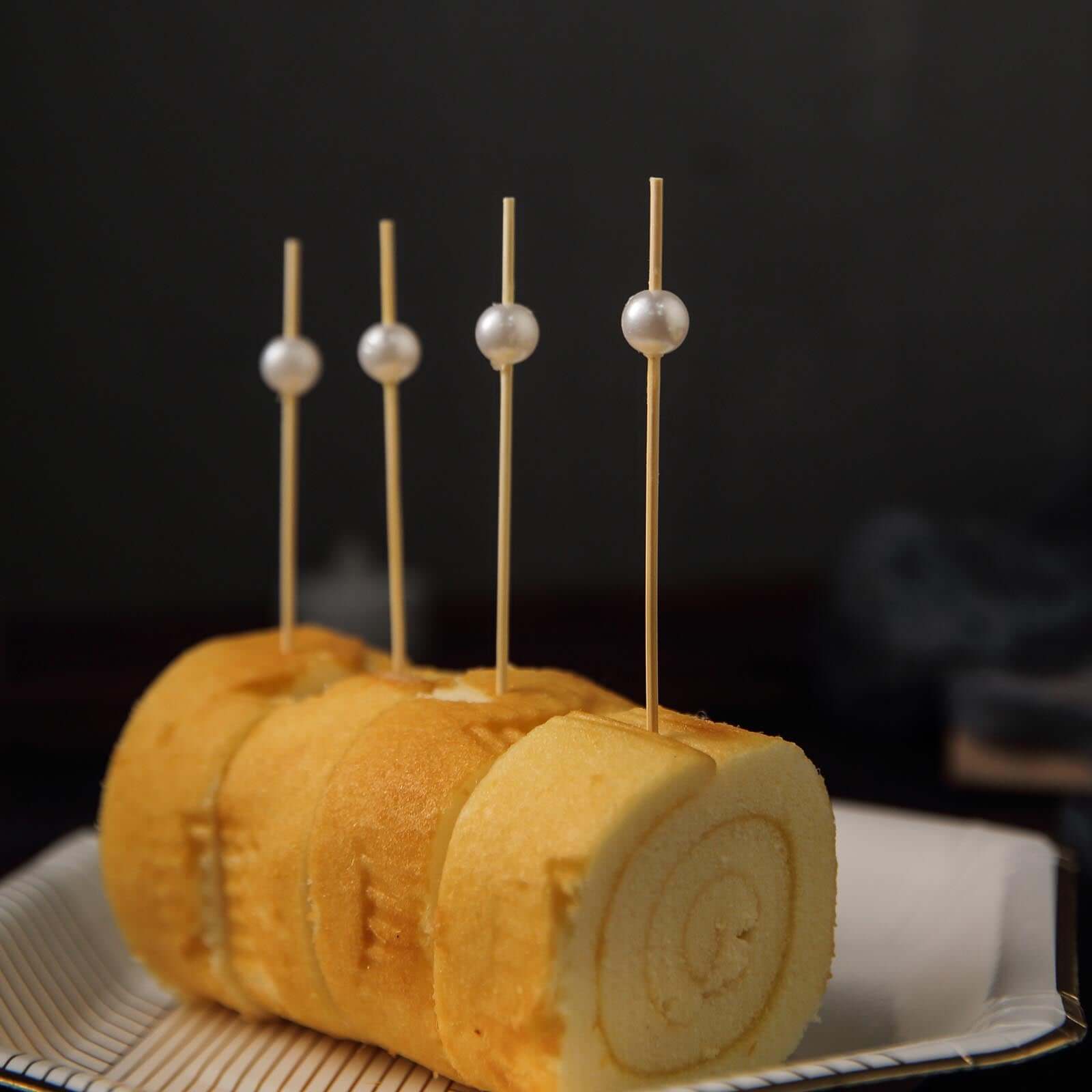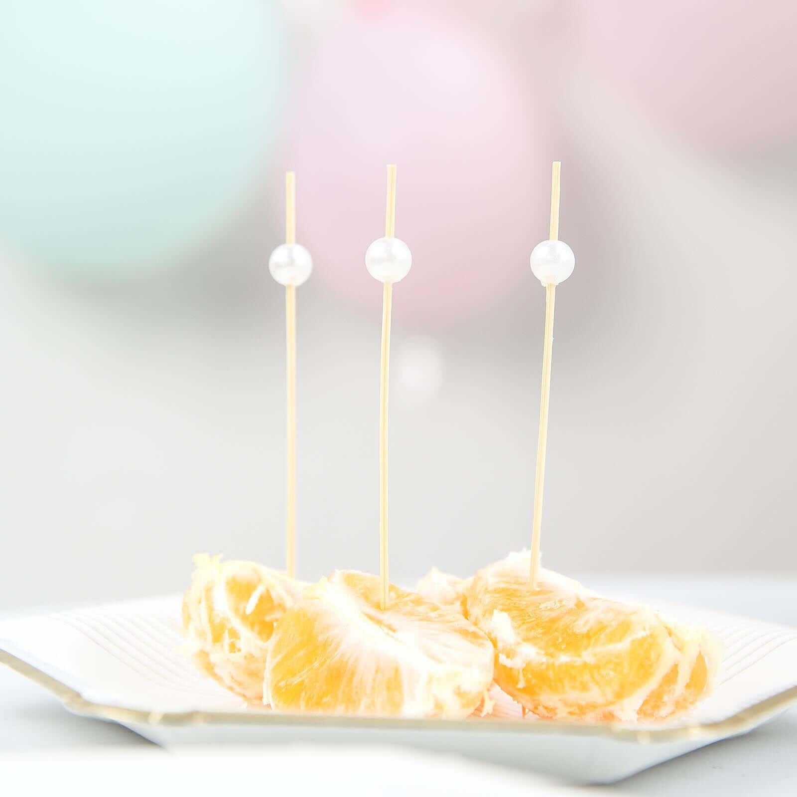 100-Pack Bamboo Cocktail Picks Natural Pearl Decorative Top Design - Eco Friendly Stir Sticks 5"