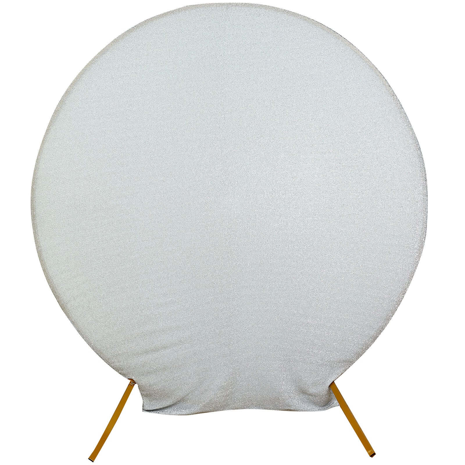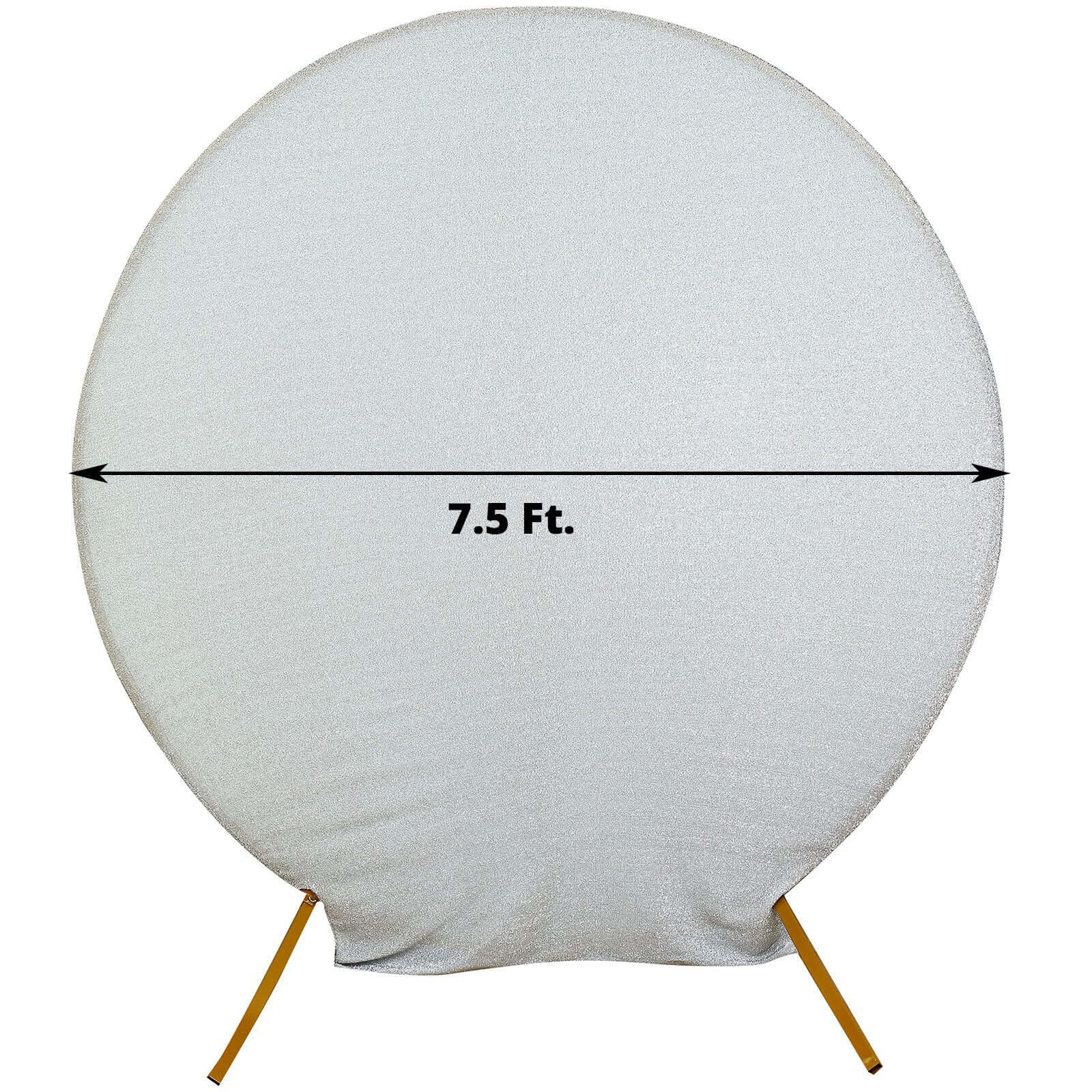 7.5ft Silver Metallic Shimmer Tinsel Spandex Round Wedding Arch Cover, 2-Sided Photo Backdrop