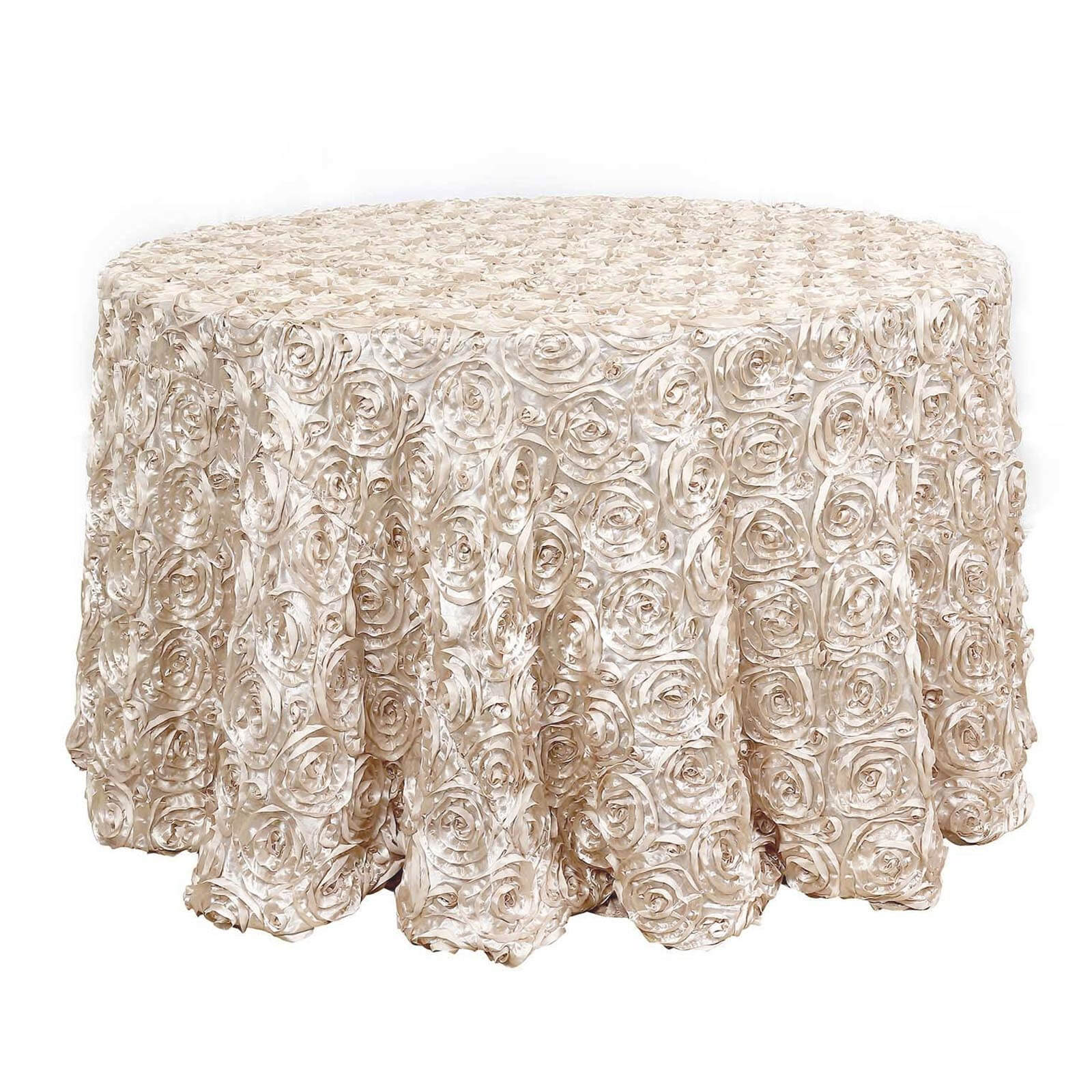 Satin 120" Round Tablecloth Beige - Grandiose 3D Rosette with Seamless Finish Table Cover